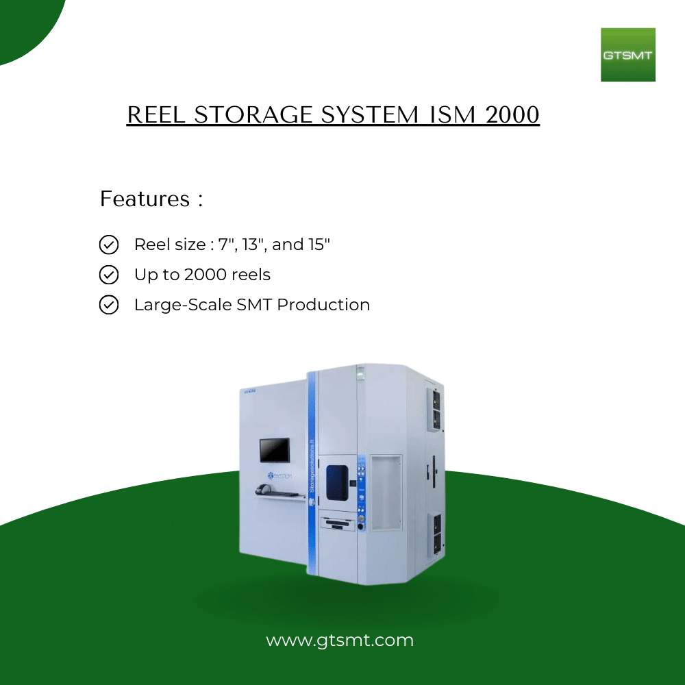 - Supports up to 2,000 reels of various sizes, including 7″, 13″, and 15″ for PCB reel storage