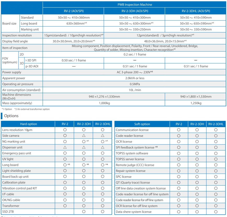 Item | RV-2 (AOI/SPI) | RV-2-3DH (AOI/SPI) | RV-2-3DHL (AOI/SPI) |