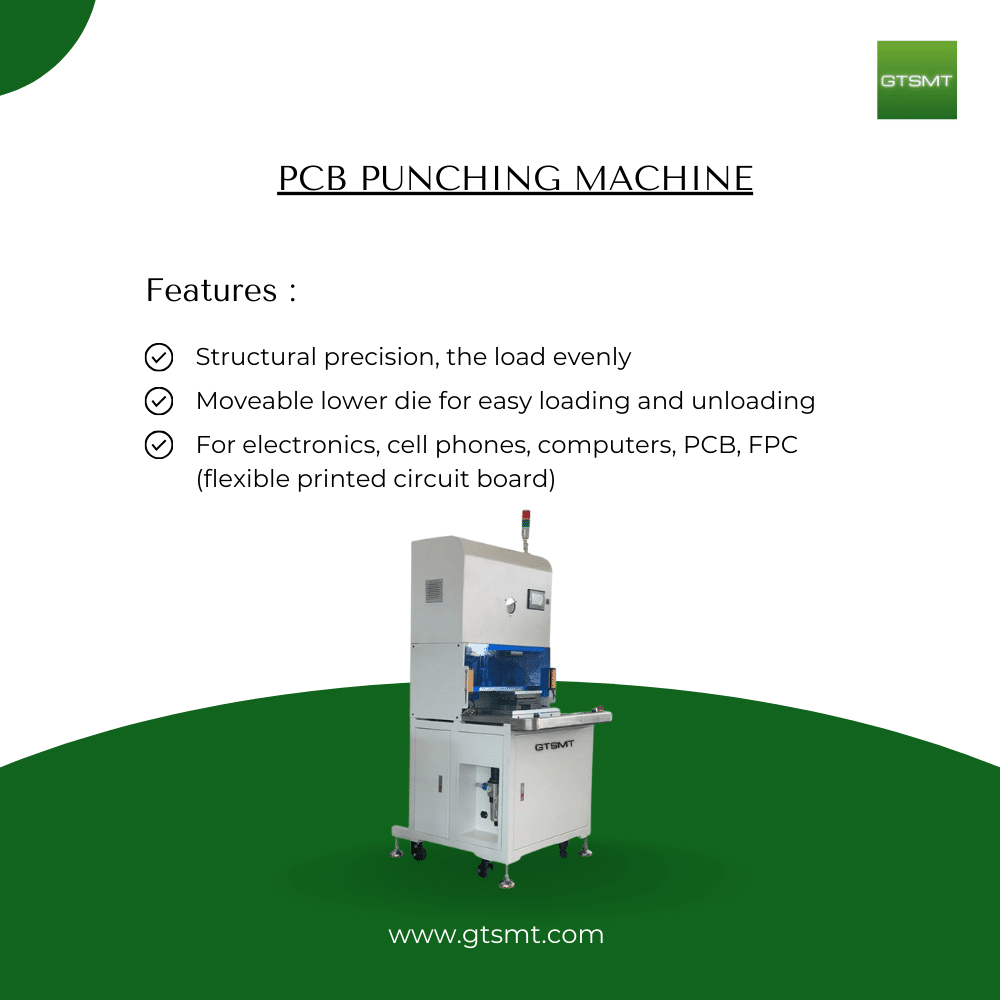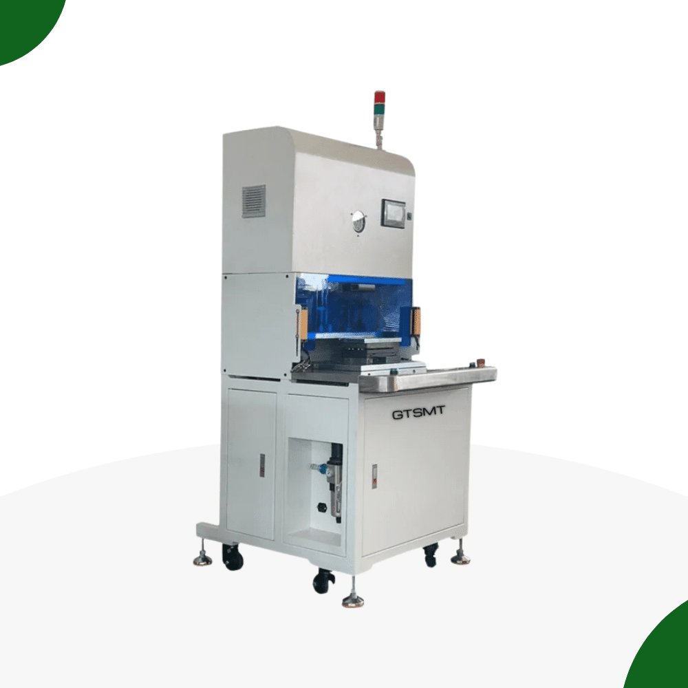 A PCB punching machine is a high-speed, mechanical or pneumatic device used to depanel PCBs by punching them out of a larger panel. It’s especially efficient for high-volume production where boards have predefined breakaway tabs or tooling holes for alignment.