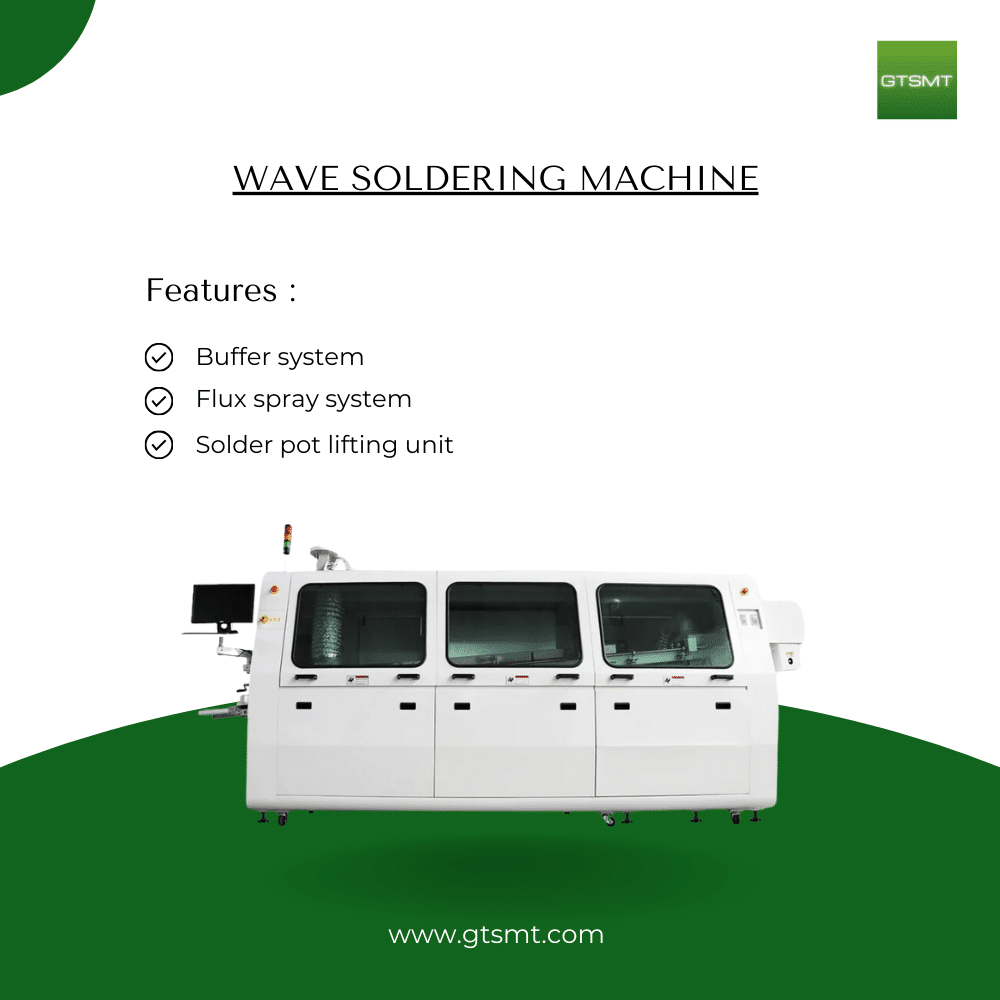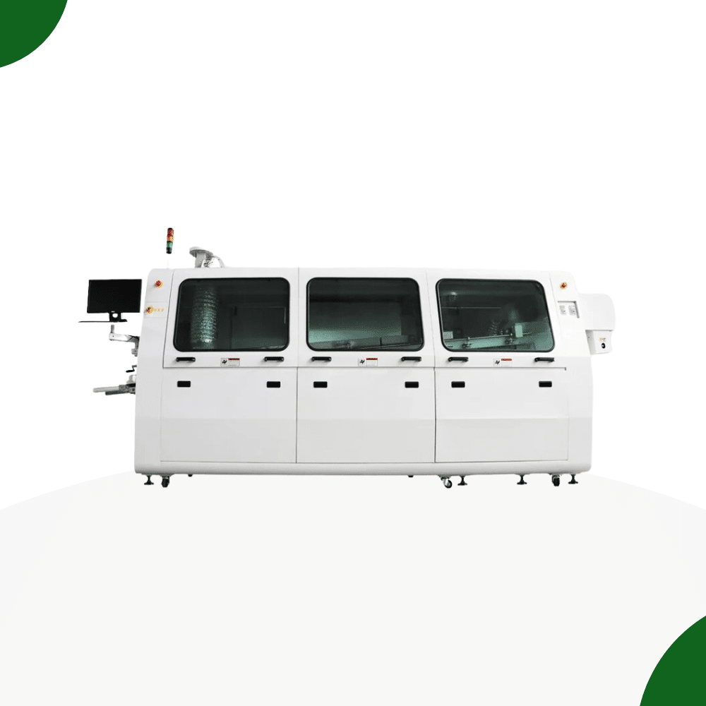 The Wave Soldering Machine is a powerful PCB soldering system designed for high-speed and reliable soldering of through-hole components. Widely used in THT (Through-Hole Technology) processes, this machine delivers molten solder via a controlled wave, ensuring consistent and durable solder joints across all component leads and pads.